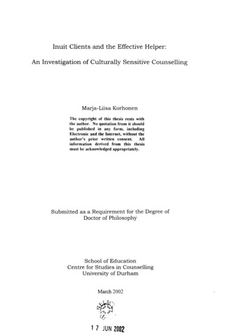 Inuit clients and effective helper : an investigation of culturally sensitive counselling.