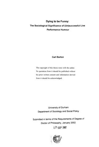 Dying to be funny : the sociological significance of (un)successful live performance humour.