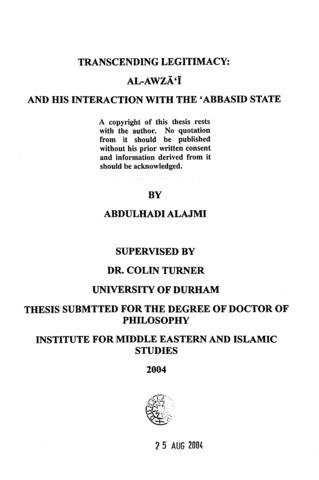 Transcending legitimacy : Al-Awza'i and his interaction with the 'Abbasid state