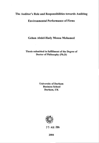 The auditors role and responsibilities towards auditing environmental performance of firms