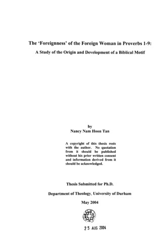 The 'foreignness' of the foreign woman in Proverbs 1-9 : a study of the origin and development of a biblical motif.