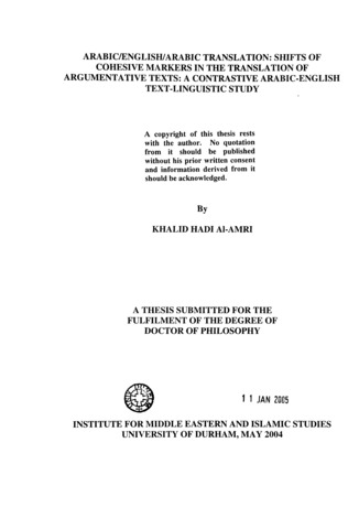 Arabic / English / Arabic translation : shifts of cohesive markers in the translation of argumentative texts : a contrastive Arabic-English text-linguistic study.