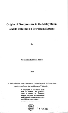 Origins of overpressure in the Malay Basin and its influence on petroleum systems.