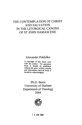 The contemplation of Christ and Salvation in the liturgical Canons of St John Damascene.