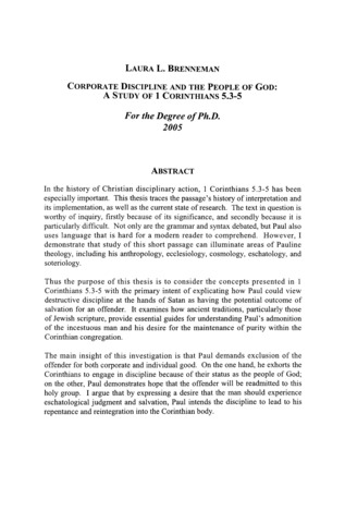 Corporate discipline and the people of God : a study of 1 Corinthians 5:3-5