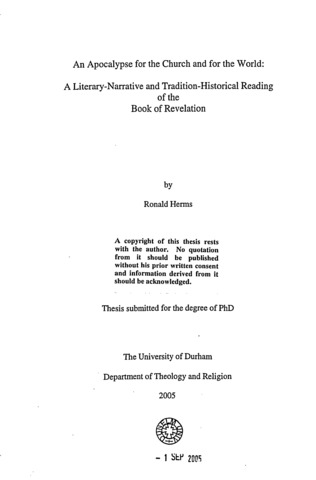 An apocalypse for the Church and for the world : a literary-narrative and tradition-historical reading of the Book of Revelation.