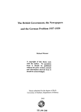 The British government, the newspapers and the German problem 1937-1939.
