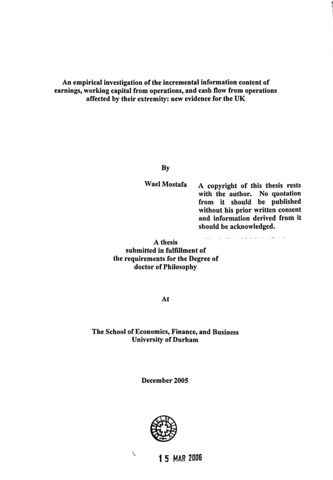 An empirical investigation of the incremental information content of earnings, working capital from operations, and cash flow from operations affected by their extremity : new evidence for the UK.