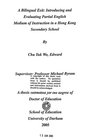 A bilingual exit : introducing and evaluating partial English medium of instruction in a Hong Kong secondary school.