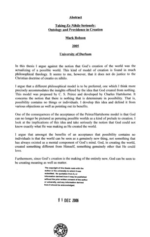 Taking Ex nihilo seriously : ontology and providence in creation.