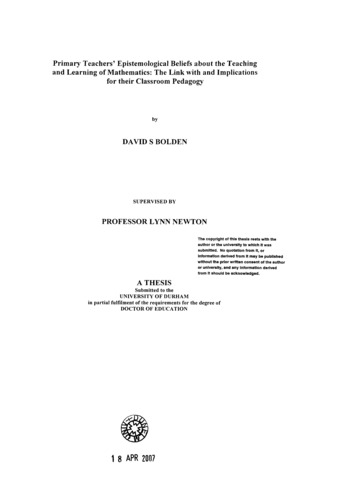 Primary teachers' epistemological beliefs about the teaching and learning of mathematics : the link with and implications for their classroom pedagogy.