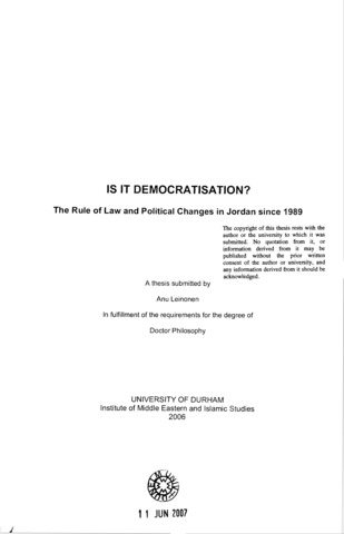 Is it democratisation? : the rule of law and political changes in Jordan since 1989.