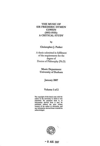The music of Sir Frederic Hymen Cowen (1852-1935) : a critical study