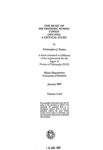The music of Sir Frederic Hymen Cowen (1852-1935) : a critical study.