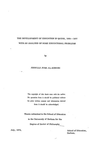 The Development of Education in Qatar, 1950 - 1977 With an Analysis of Some Educational Problems.