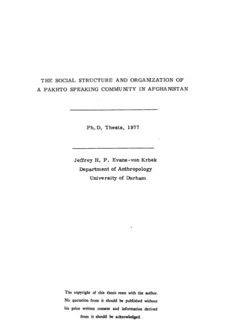 The Social Structure and Organization of A Pakhto Speaking Community in Afghanistan.