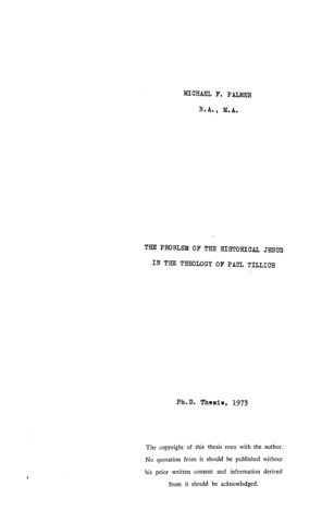 The problem of the historical Jesus in the theology of Paul Tillich.