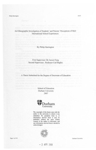 An Ethnographic Investigation of Students' and Parents' Perceptions of their International School Experiences.
