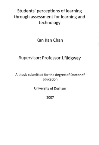 Students' perceptions of learning through assessment for learning and technology.