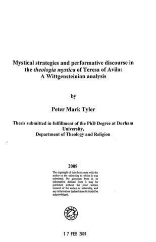 Mystical strategies and performative discourse in the theologia mystica of Teresa of Avila: A Wittgensteinian analysis.