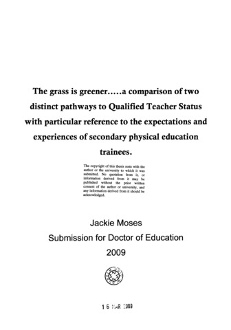 The grass is greener.....a comparison of two distinct pathways to Qualified Teacher Status with particular reference to the expectations and experiences of secondary physical education trainees.