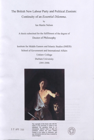 THE BRITISH NEW LABOUR PARTY AND POLITICAL ZIONISM: CONTINUITY OF AN ESSENTIAL DILEMMA.