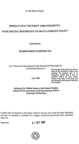 Persian Gulf security arrangements, with special reference to Iran's foreign policy