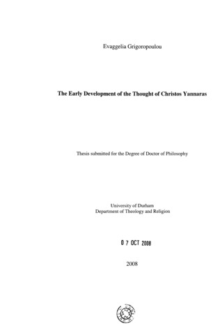 The early development of the thought of Christos Yannaras.