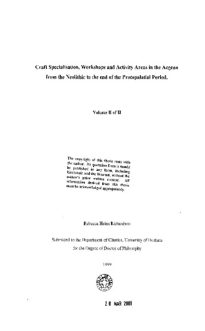 Craft specialisation, workshops and activity areas in the Aegean from the Neolithic to the end of the protopalatial period