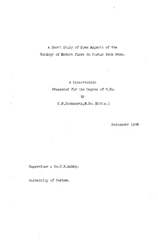 A short study of some aspects of the ecology of rodent fleas in castle Eden Dene.