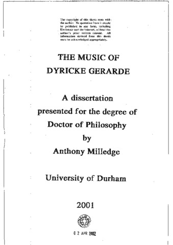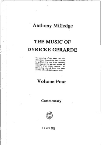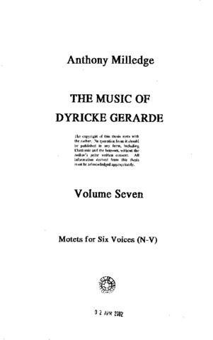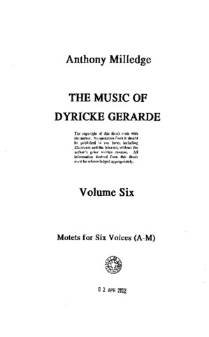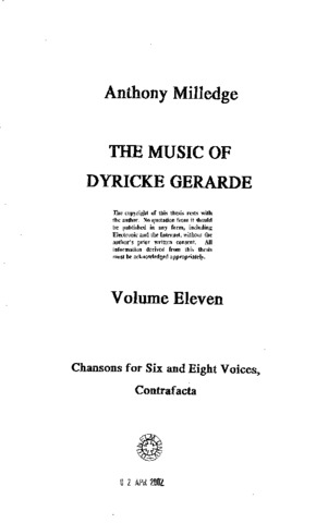 The extant works of Dyricke Gerarde (fl. a1540-a1580) form the largest known collection of presumed holograph musical material written before 1600. 169 of Gerarde's works survive, some in more than one version, most others showing varying degrees of revision and recomposition. This quantity of revision, also the largest amount known from before 1600, is itself invaluable as an insight into the musical development and working practices of a Renaissance composer. Apart from this prolific output, almost nothing is known of Gerarde's life, his dates or nationality, nor precisely what his name was. The purpose of this dissertation is to examine his music, to analyse it from a number of viewpoints, to compare it with appropriate contemporary material and to draw conclusions concerning Gerarde's place in the evolution of sixteenth-century music. To support this, the entire corpus of his work is presented in an academic edition, showing all emendations and recompositions, in parallel score where necessary, and with all incomplete pieces reconstructed.