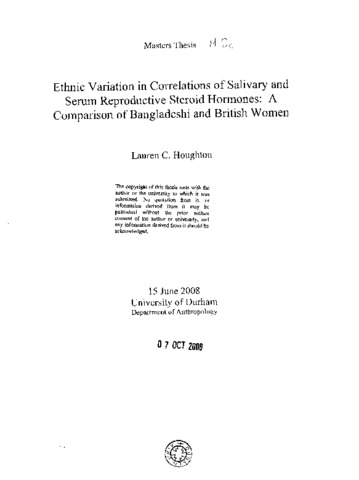 Ethnic variation in correlations of salivary and serum reproductive steroid hormones: a comparison of Bangladeshi and British women