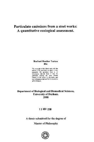 The research presented here was the response to an improvement condition issued by the Environment Agency. The aim of the present study was to examine the potential effects of the particulate emissions from an integrated iron and steel works, to an adjacent sand dune ecosystem, identified as a Site of Special Scientific Importance (SSSI) for its flora, fauna and bird life. A monitoring and assessment of the deposition and flux of particulates was undertaken from April 2006 to September 2007 at monitoring sites located on the iron and steel works and in the surrounding area. A passive particulate deposition and flux monitoring study was undertaken at six sites on and surrounding the integrated iron and steel works using Frisbee deposit gauges and sticky pads. The deposition and flux of particulates was significantly higher at the monitoring sites located on or close to the works, and decreased up to 3 km from the works. The particles found on and near the works were predominately iron-rich, and most likely to be a result of emissions from the works. The chemical characteristics of the particles identified further away from the works were more diverse, and a combination of marine, soil, combustion or industrially derived particles. A desk-top review and development of the model scenario was undertaken, to assess the relevance of the modelled scenarios of PM(_10) emissions, to the total dust deposited to the passive deposition gauges. The model scenario was found to be an important qualitative tool, but could not be used to predict quantitative measurements of particulate deposition due to the limitations and uncertainty of modelling. The deposition of particulates to the SSSI was significantly higher at sites located closer to the works, and increased significantly with exposure time. The iron concentration of the soil was found to be significantly higher on the SSSI than at a sand dune ecosystem 3.5 km away. Cleaned leaves of Leymus arenarius and Plantago lanceolata had a significantly higher rate of photosynthesis compared to untreated leaves growing on the SSSI. Therefore at sites where the rate of particulate deposition was relatively higher, and increased soil iron concentration was enhanced in comparison to similar sites, the rate of photosynthesis was significantly reduced in leaves of Leymus and Plantago on the SSSI.