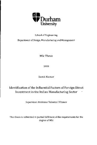 There are many factors that may influence Foreign Direct Investment (FDI) in a certain country. The study identifies the influential factors of foreign direct investments with an emphasis on foreign multinational companies in the manufacturing sector of India. It is believed that the growing need for FDI in the global economy is what derives the interest of both foreign investors and host countries in engaging in FDI. In the globalized world economy of the twenty-first century, the world market for foreign investments has become more competitive. FDI is welcomed by countries, especially developing ones. FDI can be an effective contributor not only to economic growth, but it is also important to management skills, technology transfers and a higher standard of living. Therefore, developing countries have made considerable efforts over the past decade to improve their investment climate by offering a wide range of investment incentives. The research highlights incentives attracting foreign investments and discusses the benefits gained from it. The first stage of the thesis is to outline the objectives of the study, with a review of literature relevant to the subject. The second stage is to collect data needed for the research. Finally, the results and discussion are presented together with some recommendations for further research. It is hoped that the outcomes of this research will provide some guidelines that will enable India to become a better place for conducting businesses and a favourable destination for foreign investments.