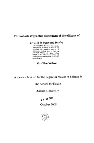 Haemorrhage is a leading cause of death in both the military and civilian environs and blood loss from sites which are not easily accessible or do not lend themselves to direct physical compression to reduce blood loss contribute hugely to the haemorrhage mortality rate, particularly in the face of delay before surgical intervention. A number of agents aimed at controlling non-compressible haemorrhage are currently under evaluation, including activated recombinant factor Vila (rFVIIa), a drug injected intravenously. rFVIIa is an attractive option to control blood loss in this population of patients since the drug can be injected at any site, the effects of rFVIIa targeted to where they are required. A number of clinical case reports and case series have demonstrated a beneficial effect of rFVIIa in trauma victims, when used as a last resort. These anecdotal reports are yet to be corroborated by adequately powered clinical trials. Animal studies have yielded conflicting results, some demonstrating a clear effect of rFVIIa on survival and others finding no benefit, or effect only on parameters such as blood product usage. Further research is required to firmly establish the efficacy of rFVIIa in trauma patients. The in vivo animal study from which blood samples for the present study were obtained provided a model of haemorrhage followed by progressive haemodilution associated with intravenous fluid resuscitation. The main aim of the in vitro study that forms the experimental work for this thesis was to compare the ability of rFVIIa with placebo to enhance clotting under the effects of progressive haemodiltion. A further aim was to establish whether a second dose of rFVIIa under these conditions had any effect. The study utilised an established technique called thromboelastography (TEG) to compare clotting in blood samples treated in vitro with rFVIIa and placebo.