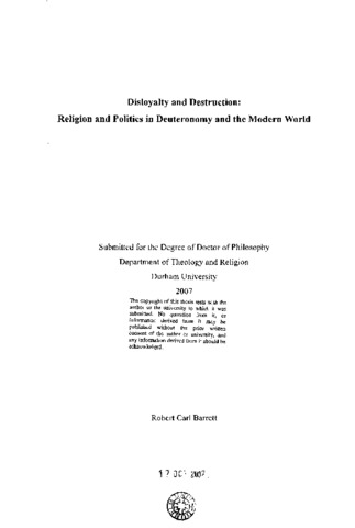 Disloyalty and destruction: religion and politics in Deuteronomy and the modern world