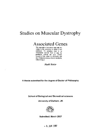 Studies on muscular dystrophy associated genes