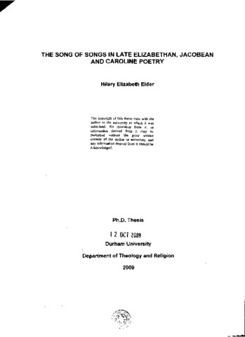 The Song of Songs in late Elizabethan, Jacobean and Caroline poetry
