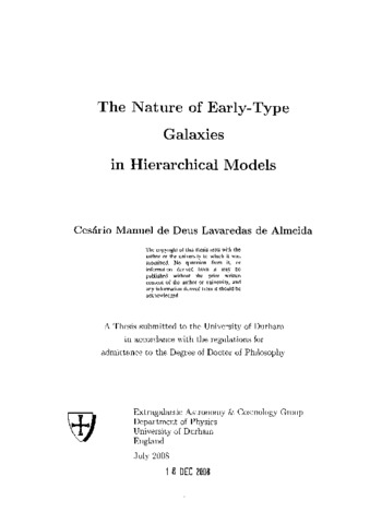 In this Thesis we describe the properties of early-type galaxies in the context of hierarchical galaxy formation. We use two variants of the GALFORM model originally introduced by Cole et al.: the Baugh et al. and the Bower et al. models. We test the prescription defined by Cole et al. to calculate the sizes of bulges, by comparing GALFORM predictions with local observational data. We find that the model reproduces successfully several tight correlations observed for early-type galaxies: the relation between velocity dispersion and luminosity, the velocity dispersion-age relation and the Fundamental Plane. However, there is an important disagreement between the models and observations: in the model, the radii of the luminous spheroids are smaller than expected. We analyse how the physical ingredients involved in the calculation of the sizes influence these results. We explore the physics of massive galaxy formation in the models, by predicting the abundance, properties and clustering of luminous red galaxies (LRGs). Without adjusting any parameters in the two models, we find a good agreement between the GALFORM model and observations. We find that model LRGs are mainly elliptical galaxies, with stellar masses around 2 x 10(^11) h-(^1) M(_ʘ) and velocity dispersions of 250 kms-(^1). The models predict the correlation function of LRGs to be a power law down to small scales, which is in excellent agreement with the observational estimates. Finally, we predict the abundance, colour and clustering of submillimeter galaxies (SMGs), which are thought to be the progenitors of local massive early-type galaxies. At the wavelengths where these galaxies are detected, 850 um, the predictions using the standard GALFORM model are inaccurate, hence the time consuming GRASIL code is used in addition to GALFORM. We develop a new method, based on artificial neural networks, to rapidly generate galaxy spectra from a small set of properties.