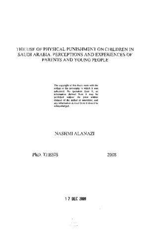 The use of physical punishment on children in Saudi Arabia. Perceptions and experiences of parents and young people