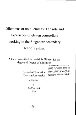 Dilemmas or no dilemmas: The role and experience of eleven counsellors working in the Singapore secondary school system