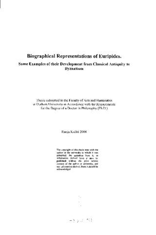 Biographical representations of Euripides. Some examples of their development from classical antiquity to Byzantium