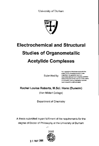 (_2)(u-C≡C-CB(_10)H(_10)C-C≡C), and the related mononuclear complex Ru(C≡C-CB(_10)H(_10)H)(dppe)Cp*, are assessed by a combination of electrochemical and spectroscopic techniques. The results allow a comparison of the 'three-dimensional' aromatic spacer l,12-C(_2)BH(_10) with the phenylene analogue. Explorations of the acetylide chemistry of the Fe(dppe)’_n’ fragment are described. The resulting air stable complexes provide a convenient entry point to the acetylide chemistry of the octahedral iron fragment. The details of additional crystal structures obtained by single crystal X-ray diffraction methods, together with a brief description of the chemistry associated with them, are presented in the appendix.
