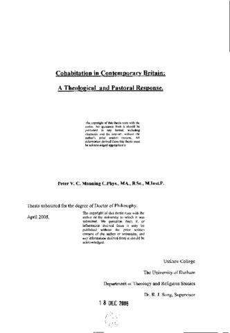 Cohabitation in contemporary Britain: a theological and pastoral response