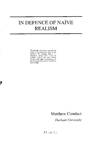 This thesis offers a defence of naive realism. As I understand it, naive realism involves a claim about the structure of perception, and about the nature of perceptual experience, that is, the sensory experience that one enjoys when perceiving something. It claims that perception is psychologically direct, in that perceptual experience, in its very nature, suffices to put one in contact with normal, mind-independent objects. And it understands this nature in terms of it being presentational of these objects. After explaining the core commitments of naive realism and presenting the salient alternative views of the nature of perceptual experience and perception, I go on to consider motivations for why it is a position that is worth defending. I discuss epistemological, metaphysical and phenomenological reasons for why naive realism should be the place where we begin our theorising about perception, and why we should defend it as strongly as we can. I then present the two main challenges to the naive realist view, the arguments from illusion and hallucination. The possibility of these two kinds of sensory experience is held to make the naive realist view of the nature of perceptual experience untenable. I present a modified form of adverbialism as the best way for the naive realist to understand the nature of perceptual experience if they want to successfully accommodate the possibility of illusory experience. On this approach, perceptual experience is the sensing of the object of perception by a subject. Next I consider the disjunctive response to the challenge that hallucination presents to the naive realist, according to which we should conceive of perceptual and hallucinatory experience as having fundamentally different natures. I argue that such a disjunctivism needs to take an extreme form in which the only positive nature to hallucinatory experience is its being subjectively indiscriminable from perceptual experience. This position is rejected on the grounds that it maintains an implausible view about the nature of sensory experience. Finally, I consider an alternative way in which the naive realist can deal with hallucination. This is to claim that perceptual and hallucinatory experience can share the same nature, while at the same time perceptual experience can be understood as presentational of the objects of perception. This strategy will require the naive realist to adopt a stance about the metaphysical nature of the entities to which one can be related in experience.