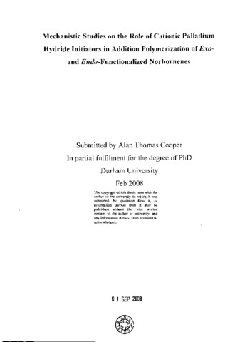 Mechanistic studies on the role of cationic palladium hydride initiators in addition polymerization of exo-and endo-functionalized norbornenes