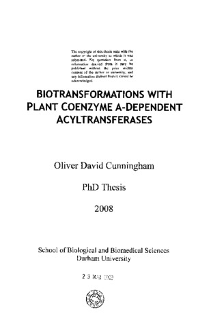 | Divisions | Faculty of Science > Biological and Biomedical Sciences, School of |