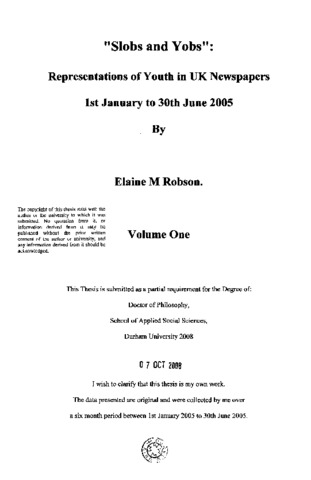 ‘Slobs and yobs’: representations of youth in the UK newspapers 1st January to 30th June 2005