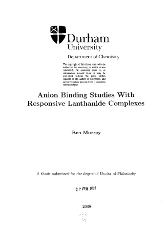The binding of a range of biologically prevalent anions to several novel lanthanide(III) complexes has been studied by emission spectroscopy, (^1)H-NMR and mass spectrometry. In each case, the resultant solution adduct and the mode of anion binding was characterised through analysis of spectral response. Following the first chapter, in which relevant background work and literature reports are discussed, the novel lanthanide(III) complexes described herein are separated into three chapters. Chapter 2 describes a range of complexes bearing a pendant azaxanthone or aza-thioxanthone derived chromophore. Binding of anions was examined largely through sensitised emission, additionally the cellular localisation and toxicity profiles of each complex was studied. Of particular interest was the discovery of a family of complexes that localised within the mitochondria of the cell lines examined, and exhibited pC0(_2) dependent luminescence, notwithstanding protein quenching. Chapter 3 describes the synthesis and evaluation of two stereoisomeric dimeric complexes, in which the conformation of each was controlled by the differing relative stereochemistry of their linking unit. A range of luminescence and NMR studies was performed to establish the relative affinities of these complexes for selected anionic species, and to compare their binding properties to that of the related monomeric complex. Chapter 4 describes the immobilization of two related complexes onto various solid-phase supports. The ability of the immobilized complexes to selectively bind to, retain then release phospho-anions on addition of a competitive aqueous anionic buffer is examined. The utility and advantages of using such materials as tools for the enrichment of phospho-peptides is discussed in relation to previously published procedures and materials.