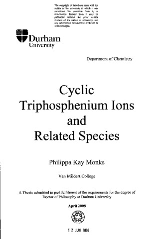 A series of cyclic triphosphenium ions containing three adjacent phosphorus atoms linked by a hydrocarbon backbone has been synthesised. They vary in ring size (four- to seven- membered rings), substituents on the four-coordinate phosphorus atoms, and organic backbone, and have been characterised by (^31)P NMR spectroscopy. Variable temperature studies probing the mechanism of formation of cyclic triphosphenium ions from a reaction of PX(_3) with a diphosphane have shown a three-step mechanism: (i) the addition of PX(_3) to the diphosphane to form an acyclic intermediate, (ii) cyclisation to afford a heterocycle with a halogen still bonded to the central P atom, and (iii) removal of the halogen to afford the cyclic triphosphenium ion. The syntheses of P(_c)-alkyl and aryl derivatives of cyclic triphosphenium ions using two different methods are described. Direct ethylation of a cyclic triphosphenium ion using ethyl triflate is only possible when the substituents on the four-coordinate phosphorus atoms are small e.g. Et. Synthesis of Pc-alkyl and aryl derivatives with larger substituents on the four-coordinate P atoms, and/or Pc, have been achieved via reaction of a diphosphane with a dichlorophosphane in the presence of AICI(_3_ or SnCI(_2). A series of tetraphosphonium ions containing four adjacent P atoms linked by an organic backbone has also been synthesised. These derivatives have been characterised using (^31)P NMR spectroscopy and where possible X-ray diffractions studies and elemental analyses. The P-P bonds in these derivatives are typical values for single bonds. The synthesis of Pt(II) complexes containing cyclic triphosphenium ions has been achieved to afford cis and/or trans isomers via reaction of a cyclic triphosphenium ion with trans-[Pt(PR(_3))CI(µCl)](_2). However, if the cyclic triphosphenium ion contains phenyl groups on both of the four-coordinate phosphorus atoms, ring scission followed by complexation of the diphosphane to Pt is observed. In the Pt(II) complexes containing cyclic triphosphenium ions, an unusually small 'J(_pt-p) value to the phosphenium central P (981-1267 Hz) suggests that the bond between the phosphenium central P atom and the Pt centre is long. Hydrolysis reactions of several Pt(II) complexes containing chlorophosphane ligands have been monitored by (^31)P NMR spectroscopy.